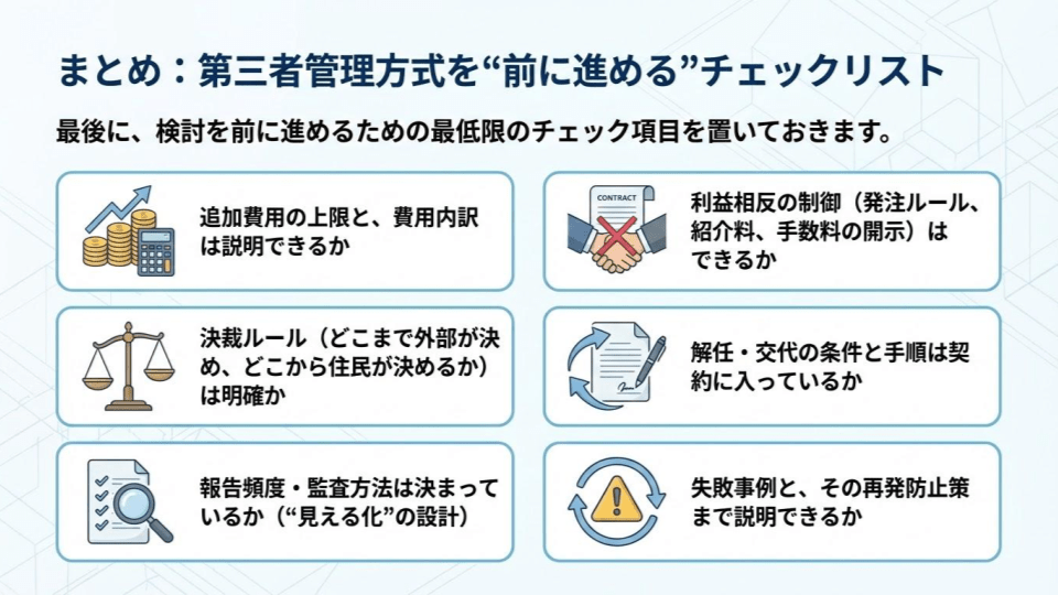 まとめ:第三者管理方式を“前に進める”チェックリスト